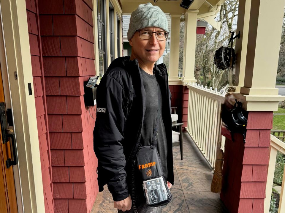 Frank was the first patient treated through the pilot project. He was sent home with a CADD pump – short for Continuous Ambulatory Delivery Device – a small portable machine that delivers medicine intravenously slowly and steadily over long periods of time. It was the first time this device was used at BC Cancer for at-home chemotherapy delivery. He had to return to Vancouver centre daily for a quick assessment from a nurse and to have his medication bag changed.