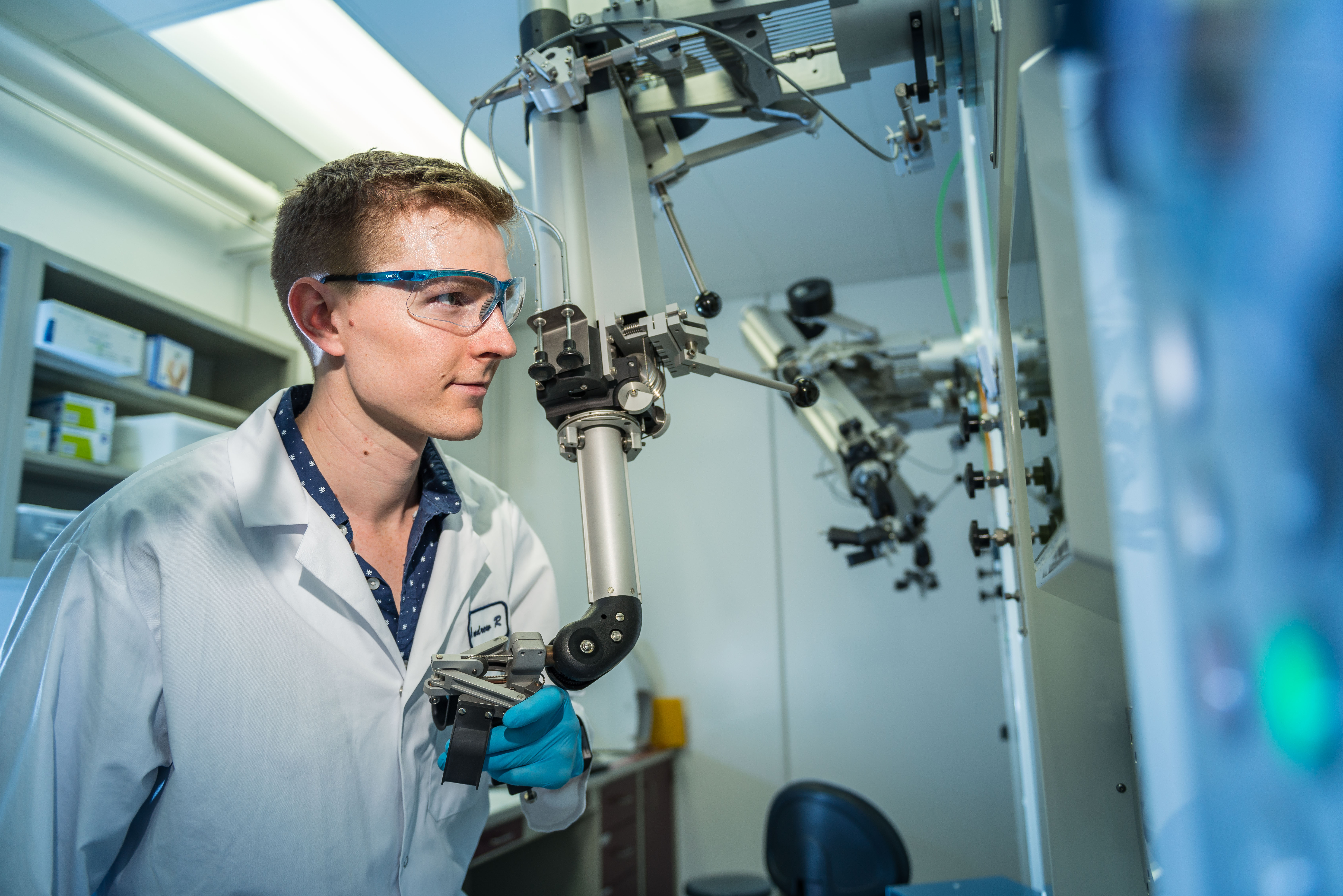 Andrew Robertson, TRIUMF Research Officer (Therapeutic Isotope Product Development), working in a TRIUMF radiochemistry laboratory. Credit: TRIUMF